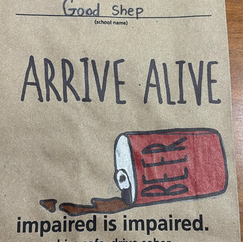 Teachers, or project coordinators, order their free paper liquor bags online, then distribute the bags to their students so they can add their personal message and creative artwork on the bag. Once the students complete their messaging, an adult or teacher collects the bags and provides them to local liquor stores.